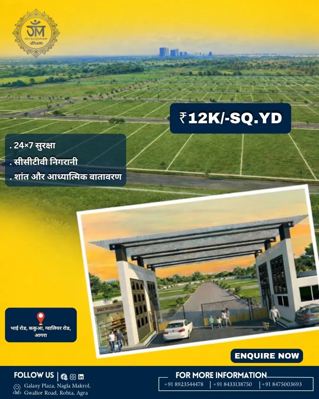 Om Kunjeshwar Dham is a thoughtfully developed residential plotting project offering well-planned plots in a peaceful and spiritually enriched environment. Designed for modern living with a touch of serenity, the colony provides a perfect blend of comfort, connectivity, and investment potential. Whether you are looking to build your dream home or make a smart investment, Om Kunjeshwar Dham is an ideal choice for a secure and promising future.