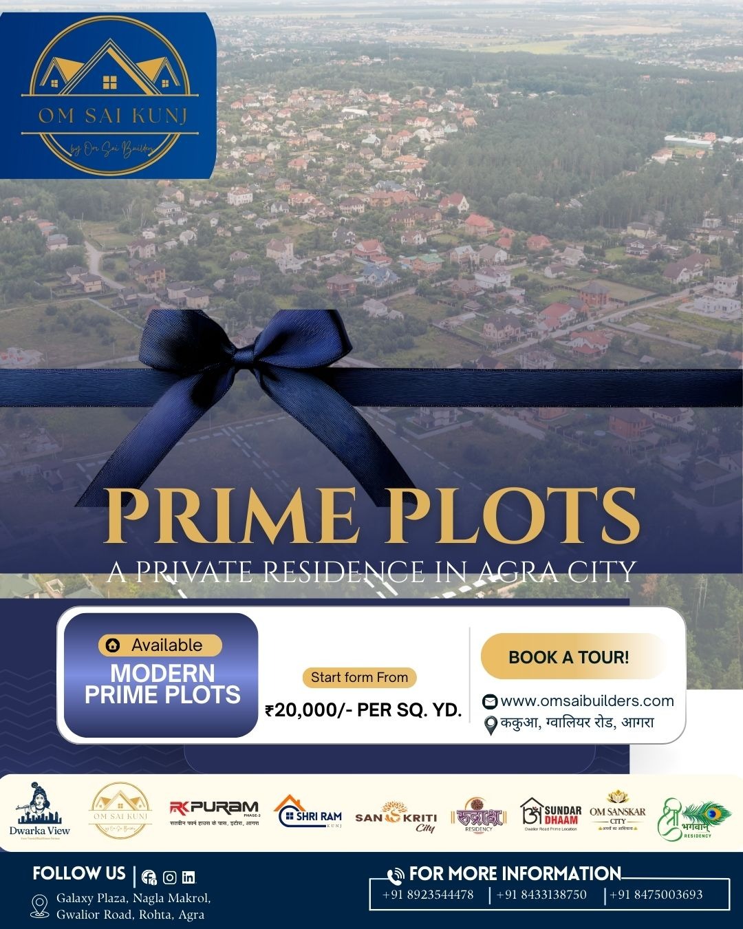 Stay updated with our current projects like RK Puram Phase-3, Sanskriti City, Rudraksha Residency, Shri Ram Kunj, Shri Bhagwan Residency, Om Sanskar City, Kunjeshwar Dham, Om Sai Kunj, Shri Mahavir Residency, Vinayak Town, Om Signature Park and Shree Ram Royal Green all designed for modern living.