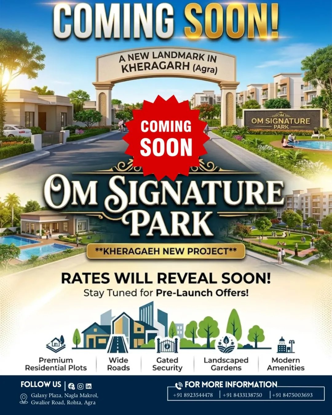 OM SIGNATURE PARK is an upcoming premium plotting project designed for those who seek a modern lifestyle with long-term investment value. Offering well-planned plots in a rapidly developing location, the project ensures a perfect balance of comfort, connectivity, and future growth potential. With a focus on quality planning and a serene environment, Om Signature Park presents an excellent opportunity to build your dream home or invest in a promising future.